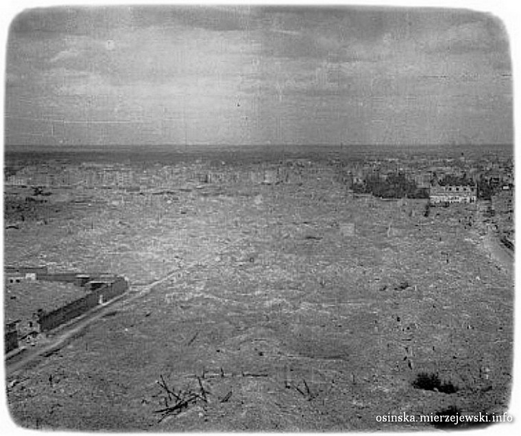 Ruiny warszawskiego getta widziane z lotu ptaka. Gdzieś tutaj przebiegała ulica Pawia. Źródło: Zbiory Jana Zawady (Petersburg). Autor zdjęcia NN.